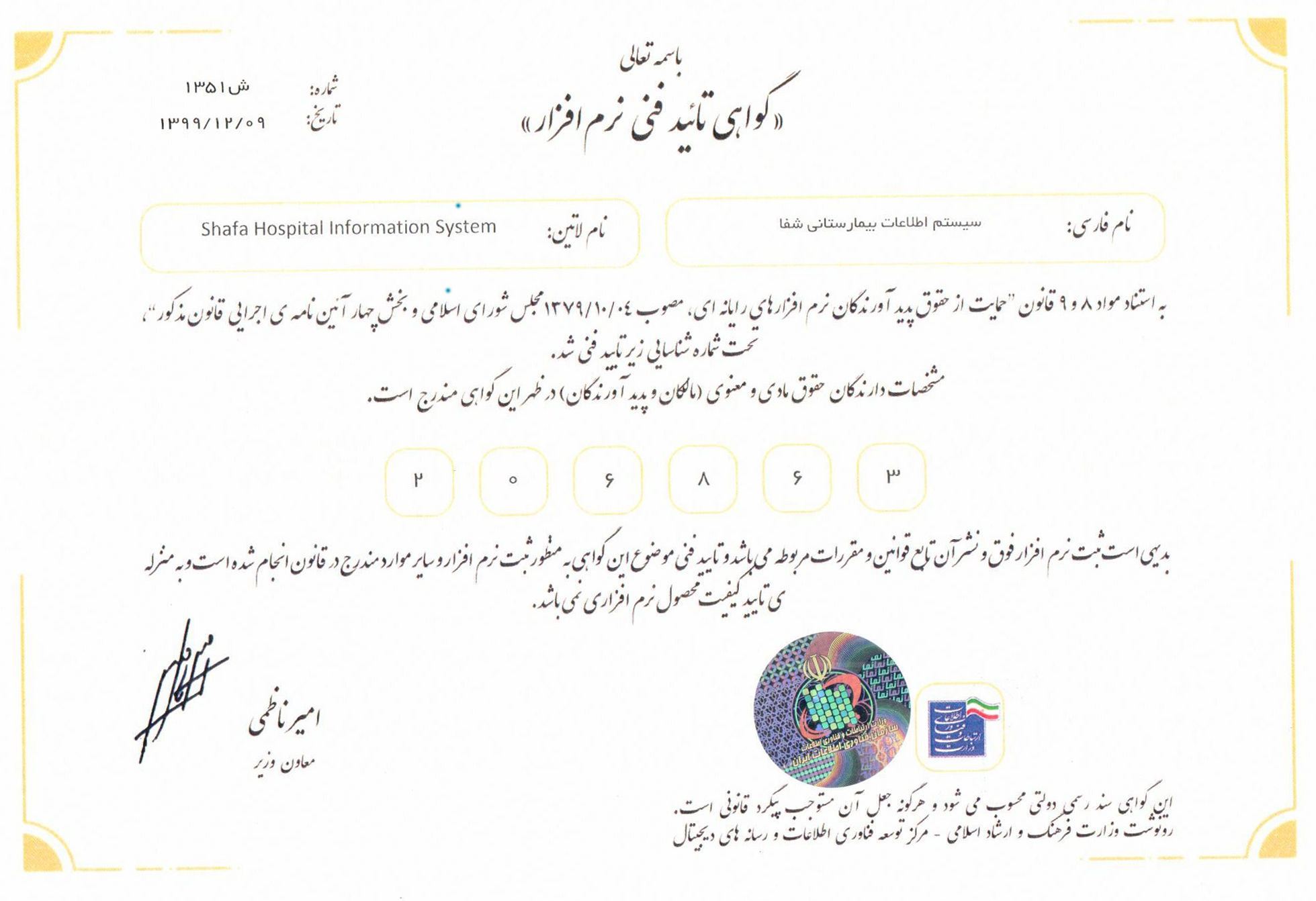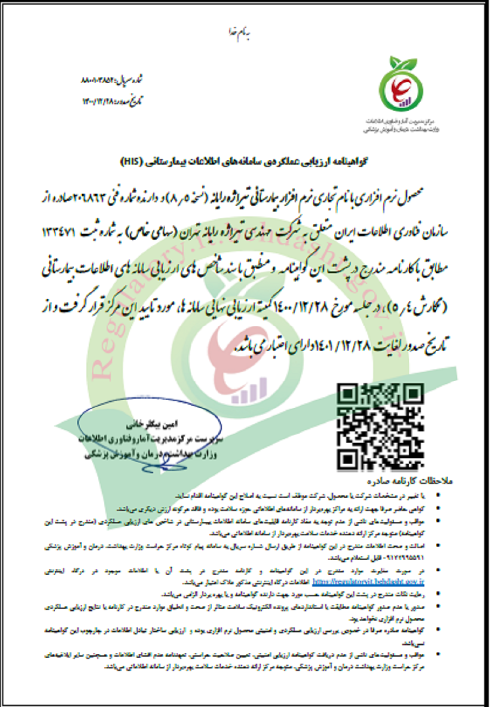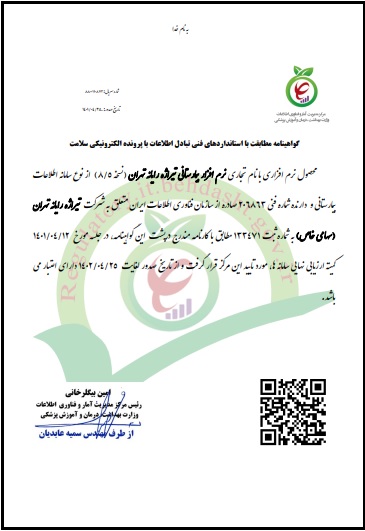 | تاییدیه فنی نرم افزار (تیراژه) | استانداردهای فنی تبادل اطلاعات با پرونده الکترونیک سلامت | ||
